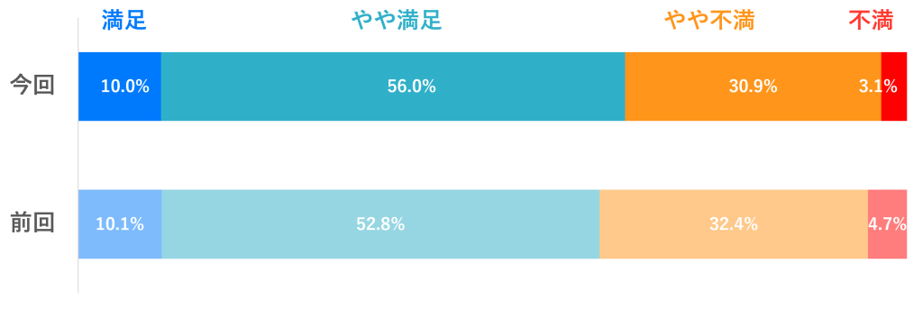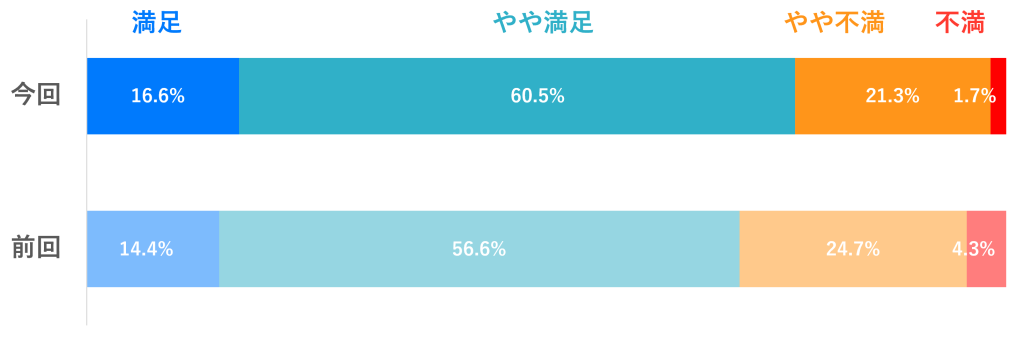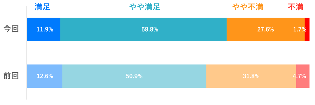 「満足」と「やや満足」の合計が70.7%と前回(63.5%)から上昇いたしました。